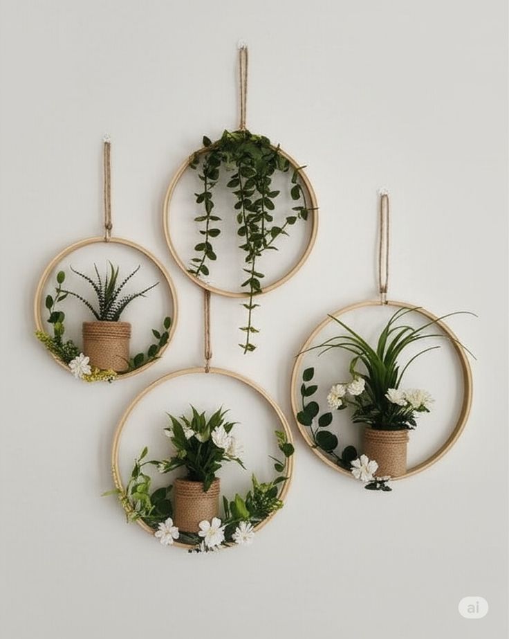This DIY Hanging Wooden Frame Stand combines the warmth of wood with the freshness of indoor plants to create a unique wall feature. The rectangular wooden frame holds a small plant shelf, allowing you to display succulents, faux plants or decorative pots as a floating artwork. It is perfect for entryways, living rooms, balconies or office walls where you want greenery without taking floor space.